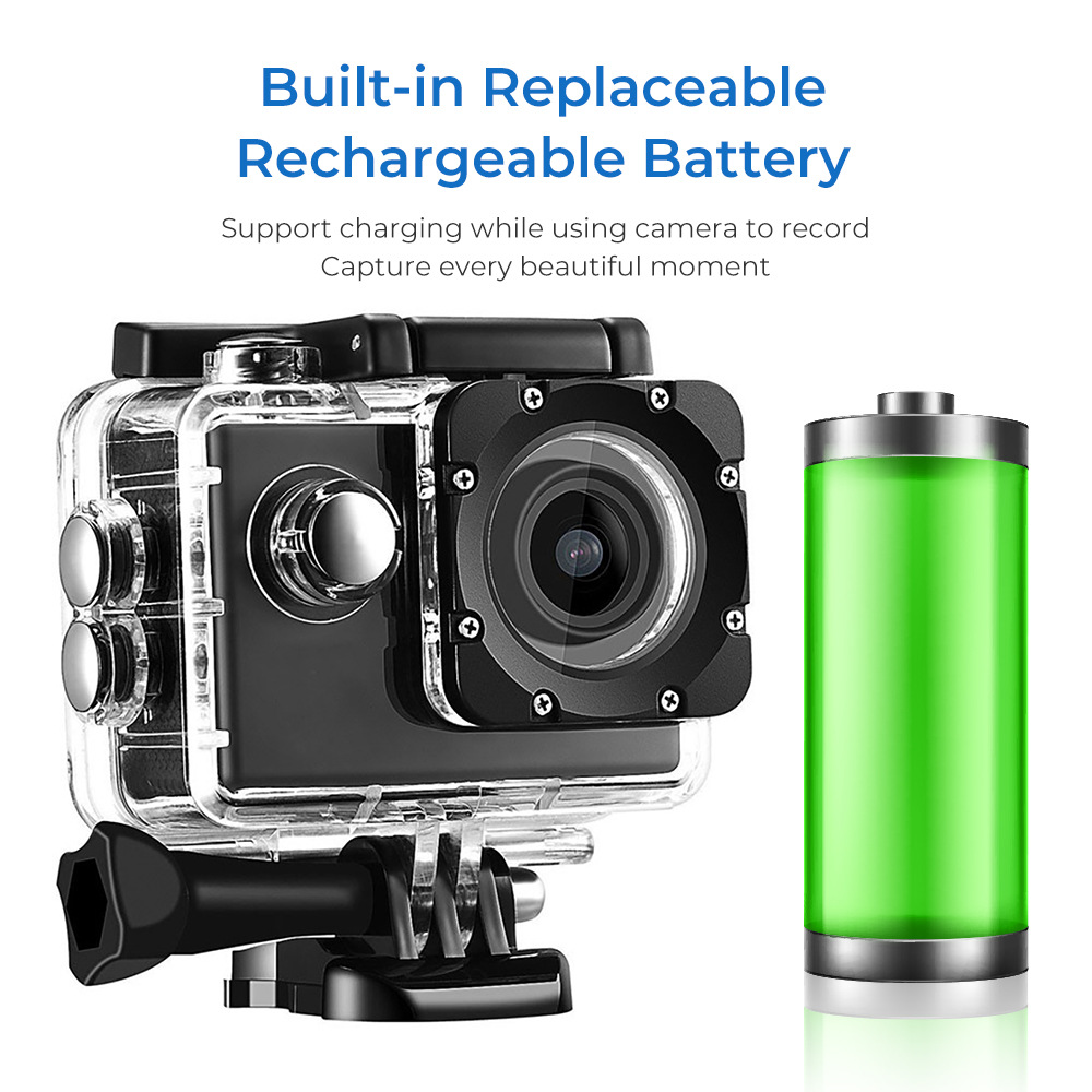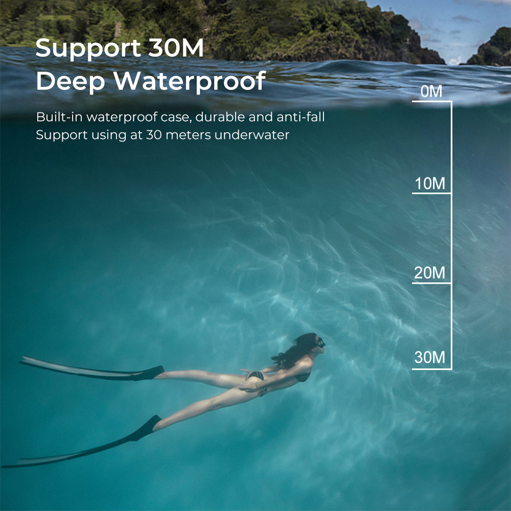 1. A water-resistant casing that allows you to film fascinating water sports; water-resistant up to 30 meters under water
